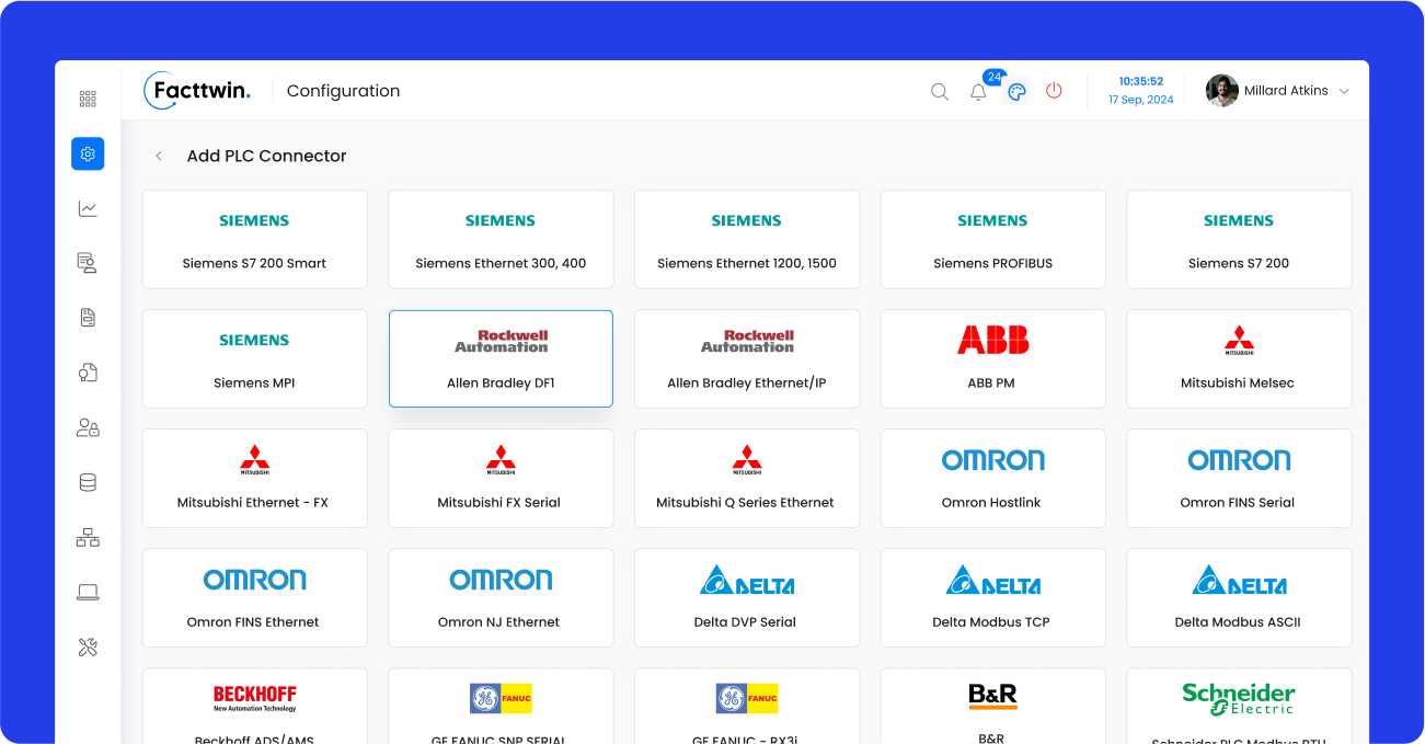 Overcome the complexity of integrating diverse devices and protocols. Facttwin Connect simplifies industrial connectivity by offering 300+ native drivers for seamless connection to a wide range of industrial assets and protocols, reducing complexity, accelerating time-to-value, and breaking down data silos to provide a unified view of industrial operations.