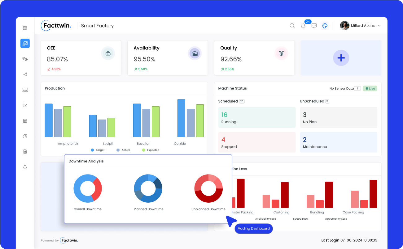With Facttwin’s in-depth analysis, you can identify and resolve production bottlenecks swiftly with clear visualizations and optimize both workflow and throughput together without any delays.